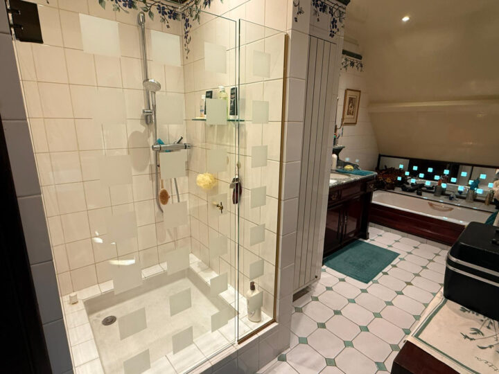 À l’étage, un couloir distribue quatre superbes suites parentales, chacune avec salle d’eau privative, ainsi qu’un toilettes indépendant.